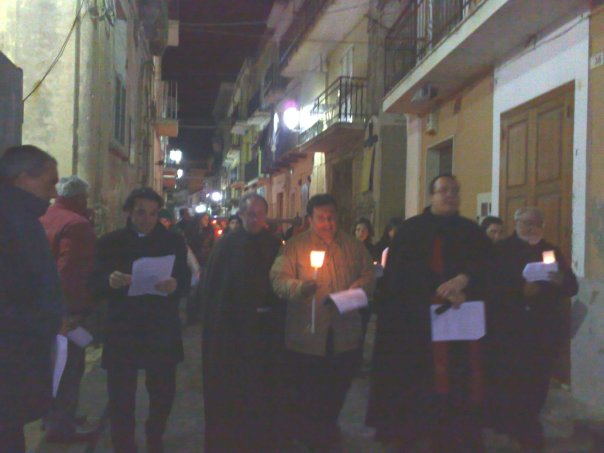 PIZZO - Un corteo di preghiera, oltre quattrocento candele accese, tantissimi giovani e profonda spiritualità. Questi gli elementi cardine della Via Crucis che si è svolta, nel pomeriggio di sabato scorso, nella città napitina. La partecipata iniziativa, realizzata dalla Consulta di Pastorale Giovanile Diocesana, guidata dal responsabile Don Domenico Muscari, è stata intrapresa con la collaborazione e l'appoggio dei tre parroci della città: padre Nicola Colao, don Antonio Gaccetta e padre Filippo Di Francia. Il rito religioso di commemorazione del Cristo sulla via della crocifissione ha visto partecipi, oltre ai tantissimi fedeli napitini, numerosissimi giovani della Consulta di Pastorale Giovanile Diocesana provenienti da Pizzo e dai paesi limitrofi: Capistrano, Filadelfia, Monterosso, Montesoro e San Nicola da Crissa. E proprio i giovani della Consulta, lungo il tragitto, hanno ricordato il drammatico epilogo della vita del Cristo portando a spalla una poderosa croce in legno lunga cinque metri e larga tre. Le meditazioni, partendo dalla Chiesa di San Rocco e San Francesco di Paola, sono proseguite lungo Corso S. Francesco e Corso Garibaldi. Attraversata Piazza della Repubblica la Via Crucis ha fatto quindi sosta presso la Chiesa di San Giorgio. Da qui la ha continuato in direzione “Spuntone”, scendendo dritto fino alla Marina, raggiungendo la Chiesa di Maria SS. Immacolata e San Ferdinando Re per concludersi, infine, con un momento di riflessione presso la località del quartiere Marina nota come “Pizza a Pundi”. Qui molto toccante è stata la cerimonia di consegna della croce lignea ai giovani di Capistrano che la porteranno nuovamente in Via Crucis sabato prossimo per le vie della loro cittadina. Nel manifestare l'unitarietà delle parrocchie e l'operatività della Consulta, il momento di preghiera ha rappresentato, altresì, la testimonianza concreta di una Chiesa attenta ai segni di cambiamento e ai bisogni spirituali delle generazioni. Le comunità parrocchiali, inoltre, già nell'annunciazione del rito di sabato scorso hanno rimarcato, anche a seguito delle polemiche che hanno vivacizzato la cronaca locale negli ultimi periodi, la propria fedeltà agli insegnamenti del magistero del Papa e dei vescovi invitando i fedeli «ad un rinnovato impegno nella conoscenza delle direttive ecclesiastiche al fine di evitare commenti inutili, inappropriati e non veritieri».