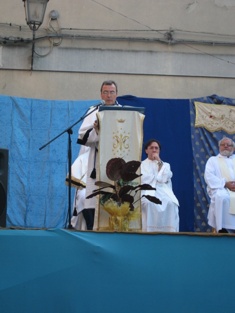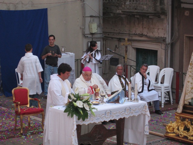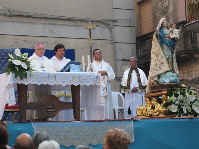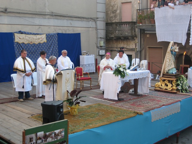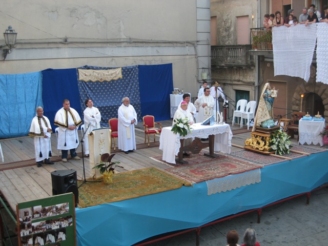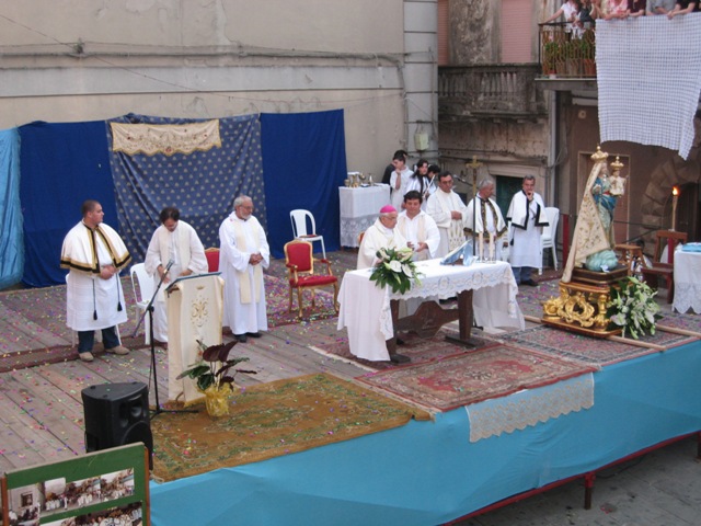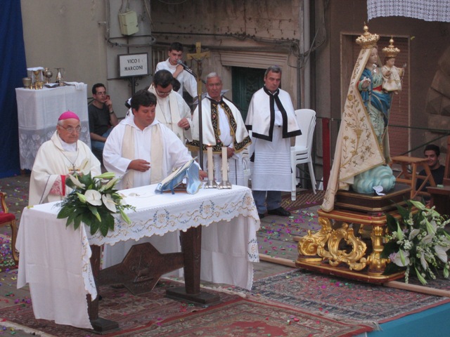 Si è svolta nel pomeriggio di venerdì 27 luglio una solenne celebrazione eucaristica in P.zza Marconi, per ricordare il XXV° anniversario dell'incoronazione di Maria SS. del Rosario. La cerimonia, molto partecipata, è stata officiata da Mons. Rimedio, che aveva incoronato Maria già nel lontano 1982. La solenne Messa è stata concelebrata dal nostro parroco, don Domenico Muscari, dal parroco di Capistrano, don Antonio Calafati e dal parroco di Monterosso e nostro compaesano don Francesco Galloro.