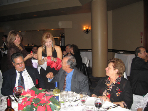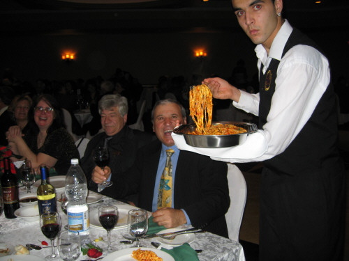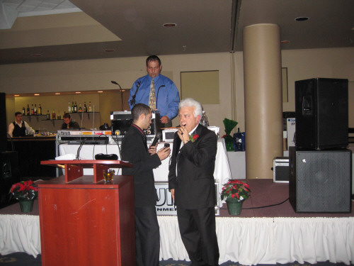 Gran gala' alla Riviera Park di Toronto in onore del nostro patrono San Nicola , organizzata dal Club Sannicolese. Come al solito mi sforzo di proporVi i migliori punti salienti della serata. La serata ha avuto inizio con il consueto saluto del presidente Joe Garisto che nel salutare i presenti e tutti i Sannicolesi in Toronto, ha ringraziato la famiglia per l'aiuto che gli consente ad onorare gli impegni che nell'arco dell'anno deve sopportare. Subito dopo l' inno nazionale, c'e' stato il graditissimo intervento del nostro Parroco Don Domenico Muscari ; la sua voce in sala e' arrivata come una valanga, nessuno lo avrebbe pensato, che alle due notturne (italiane) ci avrebbe fatto questa sorpresa. Don Domenico e' stato a Toronto nel 2006, e' rimasto nei cuori di tutti quelli che hanno avuto il piacere di conoscerLo. Ha concluso con una preghiera, e poi nell'emozione silenziosamente, abbiamo ricevuto la benedizione; nella conclusione del collegamento telefonico, l'applauso e' stato presidenziale. La cena con i balli e le sorprese hanno poi continuato fino alle luci dell'alba.