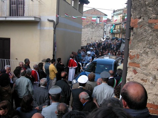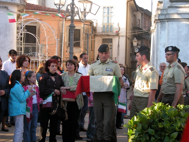 All’uscita dalla Chiesa una corona d’alloro è stata posta davanti al monumento dei Caduti, dopodichè le spoglie mortali sono state accompagnate dalla cittadinanza e dalle Confraternite del SS Crocefisso e di Maria SS Monte Carmelo, al Cimitero Comunale, presso la tomba di famiglia, dove riposeranno in eterno, accudite dall’Amore della figlia e di tutti i cari congiunti.